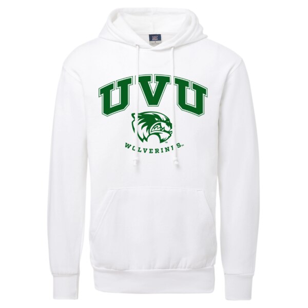 Classic block letter UVU with a larger mascot logo over “wolverines”